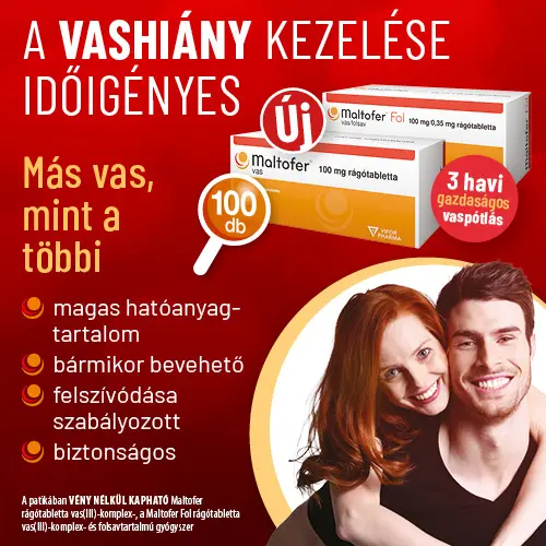 A patikában VÉNY NÉLKÜL KAPHATÓ Maltofer rágótabletta vas(III)-komplex tartalmú gyógyszer